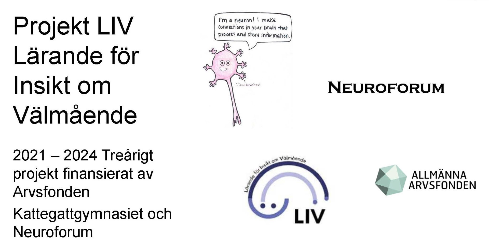 Neuroforum fick 2021 anslag från Allmänna Arvsfonden för att, under tre år, tillsammans med Kattegatt-gymnasiet i Halmstad vidareutveckla den hjärnsmarta undervisningen. Tillsammans med elever, lärare och skolhälsopersonal har projektet utvecklat metoder, kursinnehåll och strategier som främjar elevers lärande och bidrar till deras psykiska välmående och fysiska hälsa. Elevernas egna röster samt deras behov och förutsättningar har hela tiden varit en viktig utgångspunkt i arbetet. Nedan information om projektet och slutrapport.